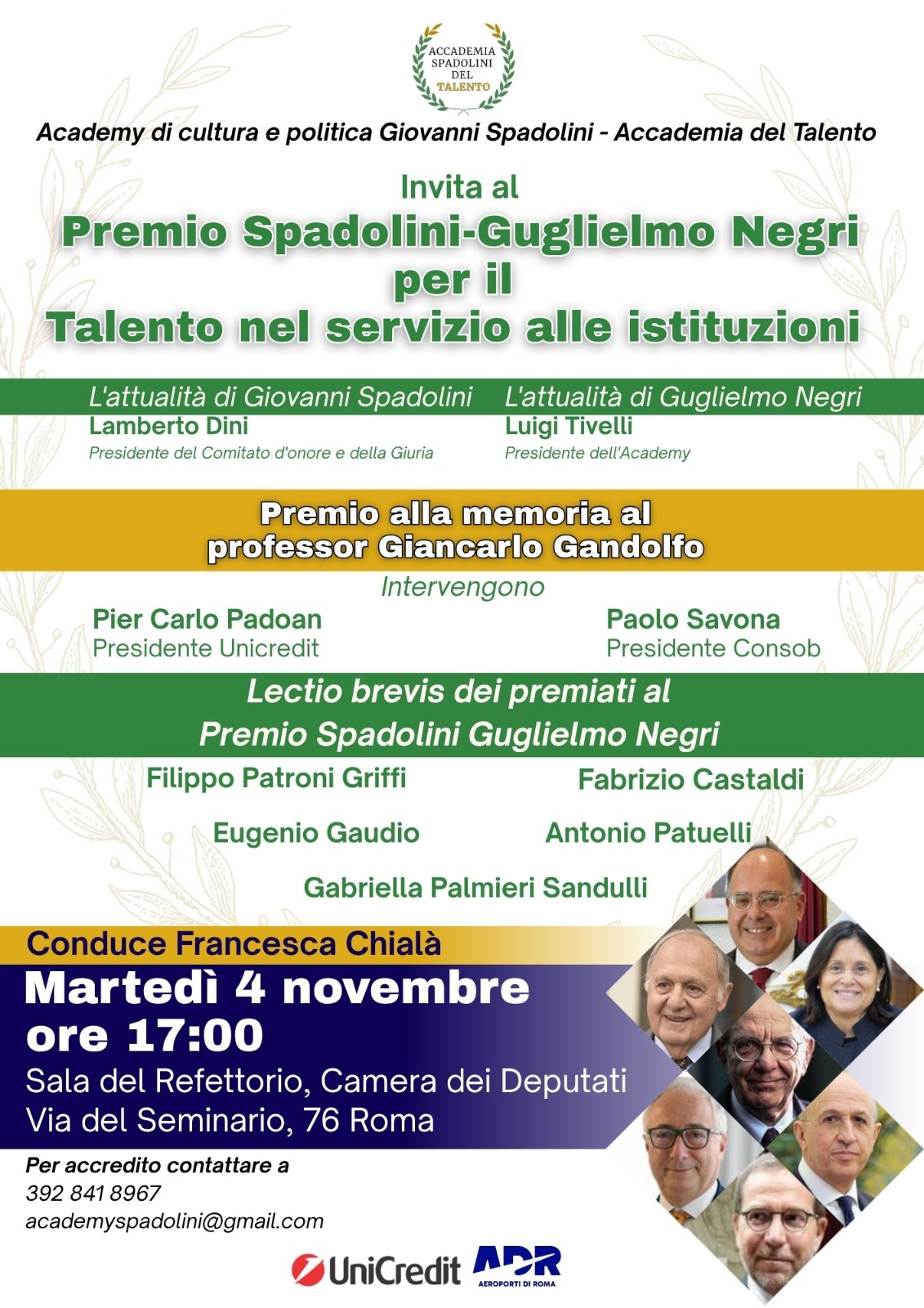 Tutte personalità che hanno svolto il loro percorso e le loro carriere sulla base del principio e del valore del merito. Un principio su cui si basa l'Academy Spadolini - Accademia del Talento.