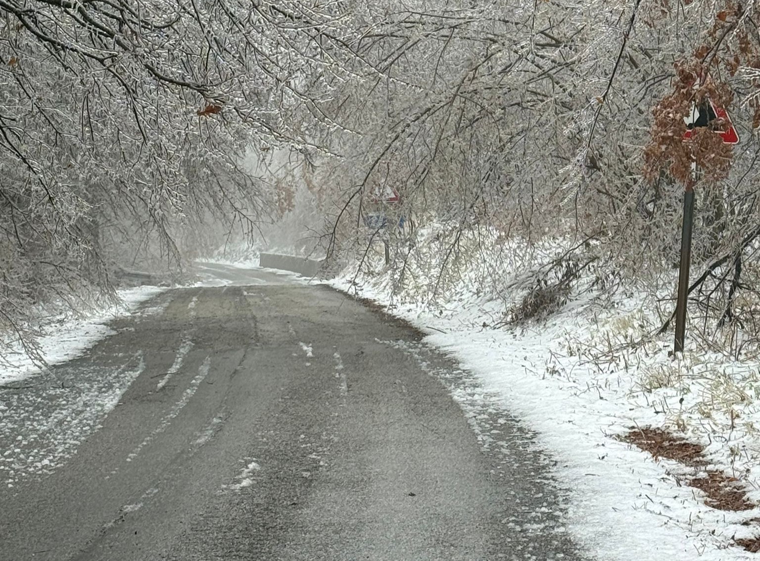 A causa delle numerose alberature cadute per il peso della neve e del ghiaccio sulla carreggiata è chiusa dalla serata di ieri la Sp 272 di Monte Alago, dal Km. 4 + 500 al Km. 6 + 500 (nel comune di Nocera Umbra).