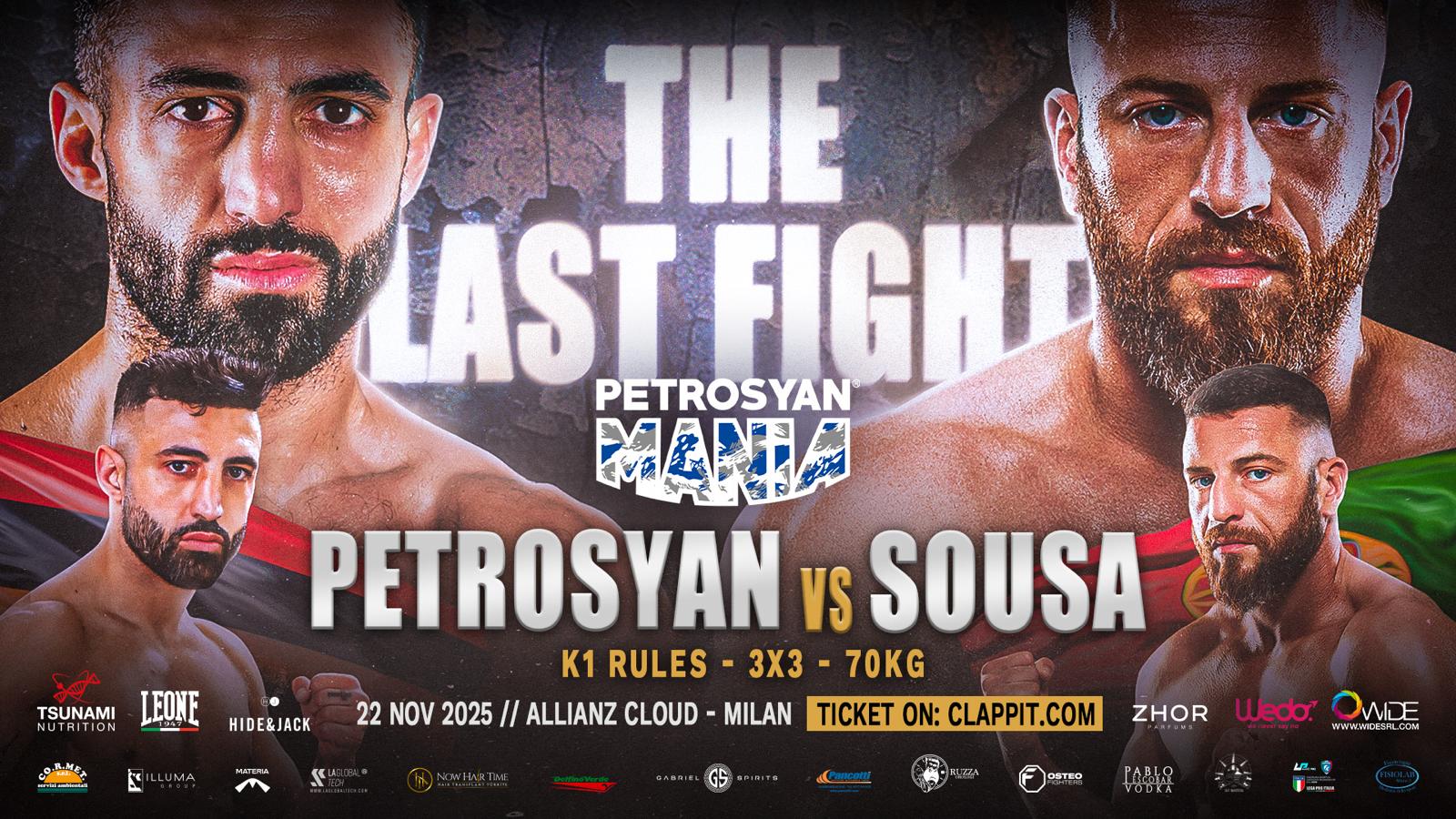 L'evento, in programma il 22 novembre all’Allianz Cloud, sarà il match clou di “Petrosyanmania – The Last Fight”: 18 incontri, divisi tra pre e main card, in tre diverse discipline (kickboxing, muay thai e boxe).