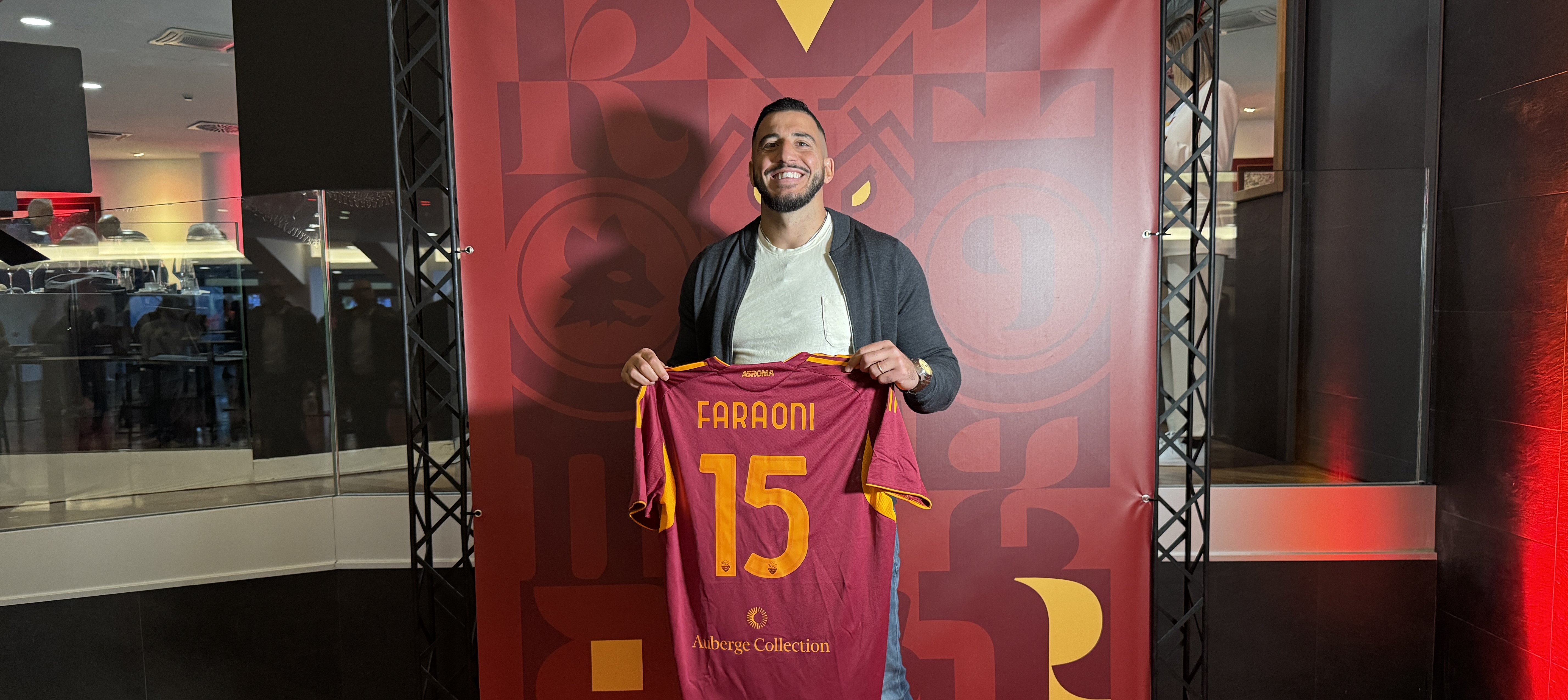 Nel pre match di Europa League contro il Lille l’AS Roma ha consegnato al kickboxer capitolino Mattia Faraoni (da sempre super tifoso giallorosso) la prima maglia ufficiale di questa stagione con il nome e il “15”, suo numero fortunato.